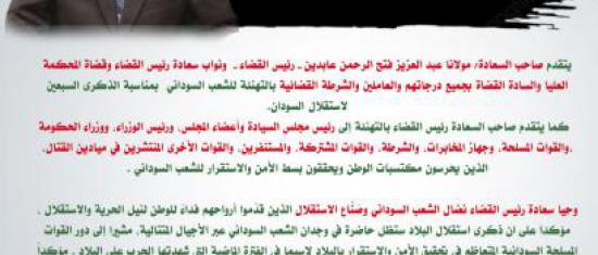 السلطة القضائية تهنئ بالذكرى السبعين لعيد الإستقلال
